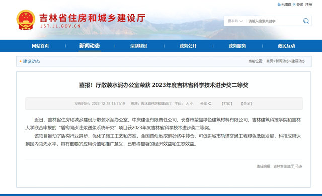 中慶建設“盾構同步注漿送漿系統研究”項目獲2023年度吉林省科學技術進步獎二等獎